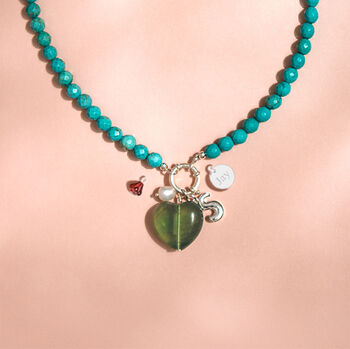 Turquoise Bead And Red Heart Necklace