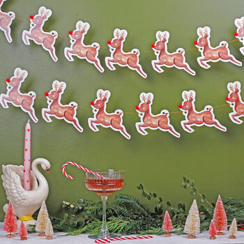 Vintage Christmas Bunting With 15 Reindeer Flag Design