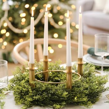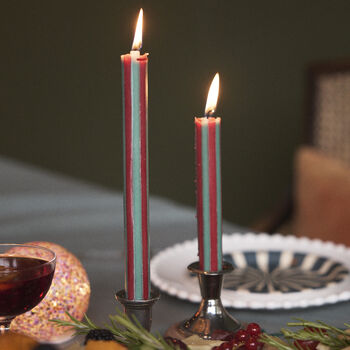 It wouldn’t be Christmas without the flicker of candlelight (or untangling the lights you threw in a box last year). With candles, try mixing heights and shapes to keep things interesting. Think striped tapers, bauble tealight holders, realistic orange candles and Christmas tree-shaped styles to give your tablescape a gorgeous, festive glow.