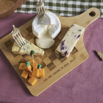 The main event is, of course, the food. So you’ll want to make it the star of the show. To do this, grab a checker cheeseboard or bespoke serving platter (from a small brand, obvs) and pile it high with all your fave nibbles. Just try not to eat them all before your guests arrive.