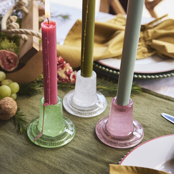 Don’t forget the candle holders. They can make just as much impact as the candles themselves, if not more. Choose handmade designs that feel bang on trend, like statement ceramic bows, or go for a twist on a classic design with these recycled glass holders.