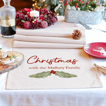 A table runner is a really faff-free way to add warmth and texture to your table. Try a boujee red velvet runner for a touch of luxury or linen for a more timeless feel. You could even add an extra personal touch with a personalised family name runner or personalised tablecloth stickers with your guest’s names.