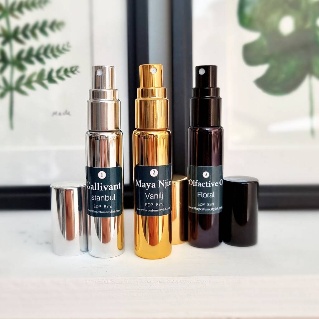 Experience the creamy sophistication of Vanilj by Maya Njie, the modern floral elegance of Floral by Olfactive O, and the ambery sensuality of Istanbul by Gallivant. Each 8ml perfume is beautifully hand-decanted into a refillable glass vial — ideal for gifting, travel, or personal discovery.
