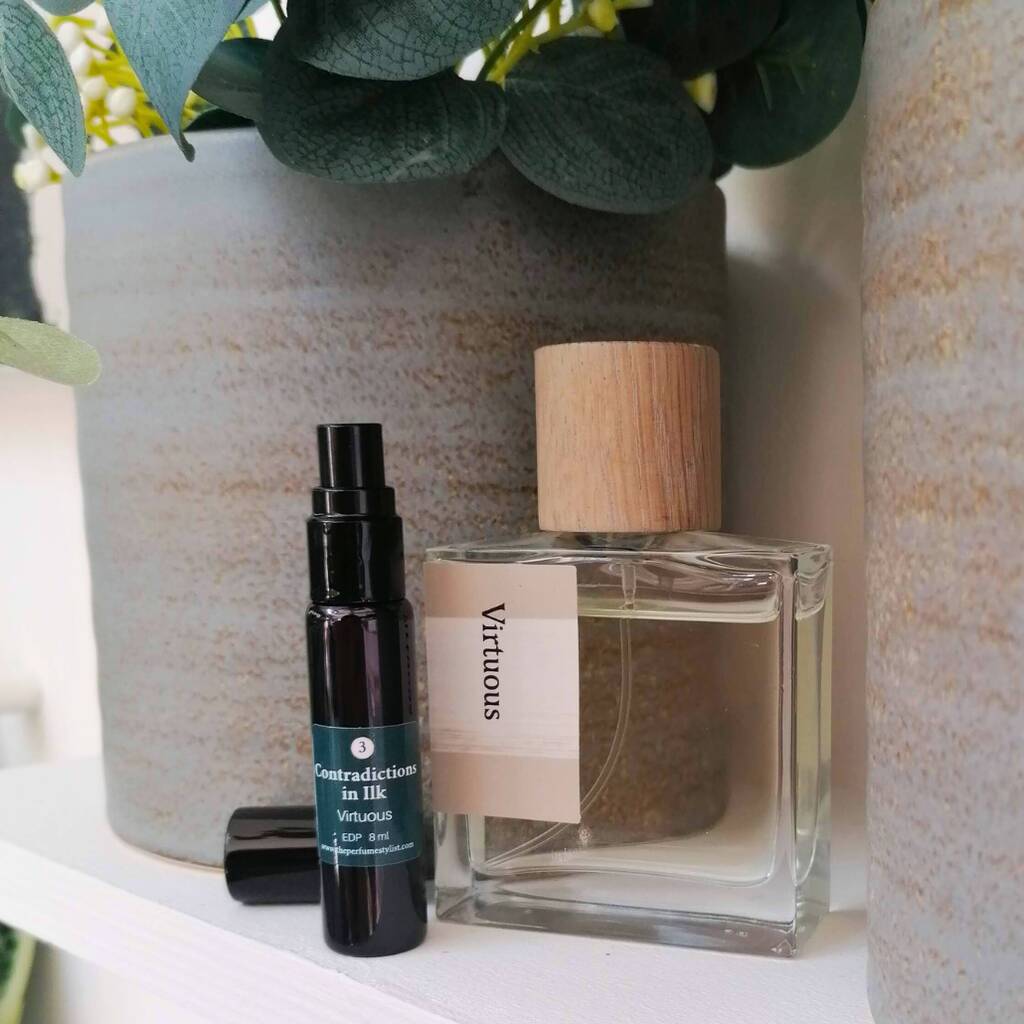 Virtuous captures quiet confidence with a modern blend of fresh herbs and soft woods. Basil and thyme open clean and green; cobblestone and sage add cool elegance; incense, oak and moss give a serene warmth. It’s a sophisticated, original aromatic-incense woody perfume, wearable all year and leaving a beautiful, understated trail. Layers beautifully with Libertine (check our store).