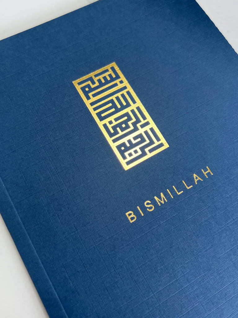 Bismillah Notebook A5 Perfect Bound Luxury Hot Foiled, Islamic Stationery, Jotter. Blue With Gold Foil