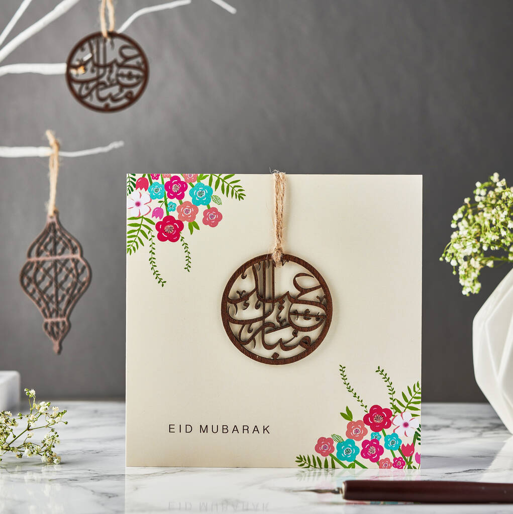 A simply stunning Eid Mubarak card from Islamic Moments luxurious Primrose Valley collection.