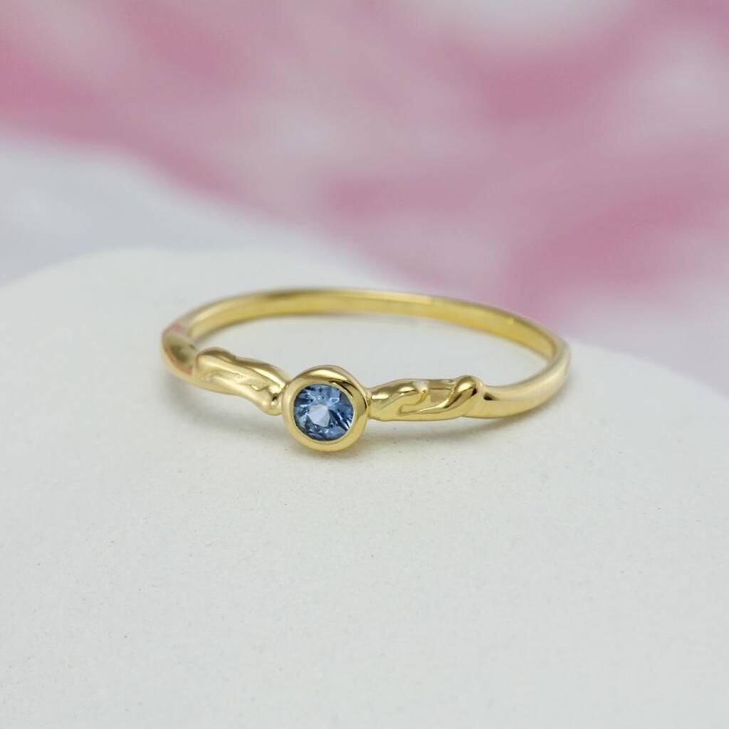 This dainty ring is handcrafted with uniquely flowing Gold Vermeil.This dainty ring is handcrafted with uniquely flowing Gold Vermeil. In its centre sits a sparkling blue Sapphire, adding a beautifully gentle touch of colour. It would make a thoughtful gift for her and a beautiful addition to any women's jewellery collection.
