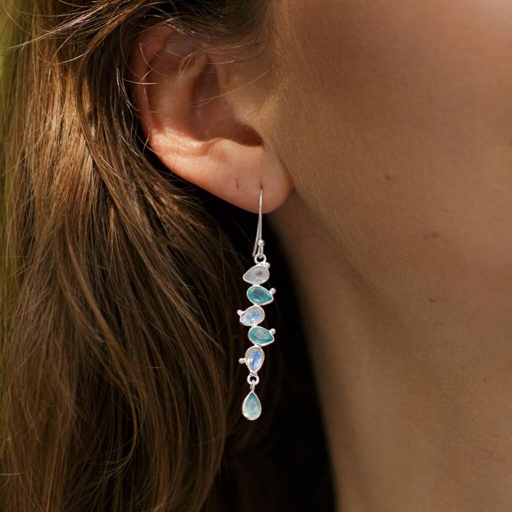 Rainbow Moonstone And Aqua Chalcedony Drop Earrings