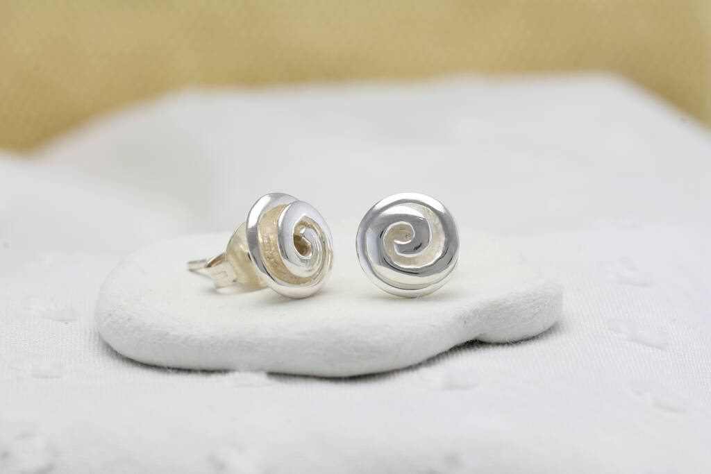 Crafted from Sterling Silver into a beautiful spiral design, these earrings can be stacked up or worn alone.If you're looking for a stud that makes a statement, these are the perfect pair.