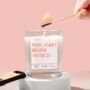 A funny gift for celebrating a 21st. The candle reads 'fuck, i can't believe you're 21' in bold red letters on a premium white label