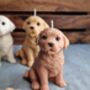 The candle and 3 wax melts shaped like a bone and paws in the same colour and scent as your pup.