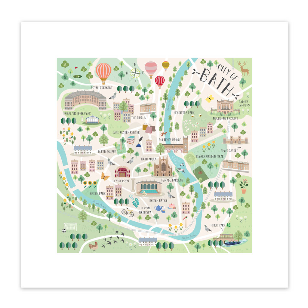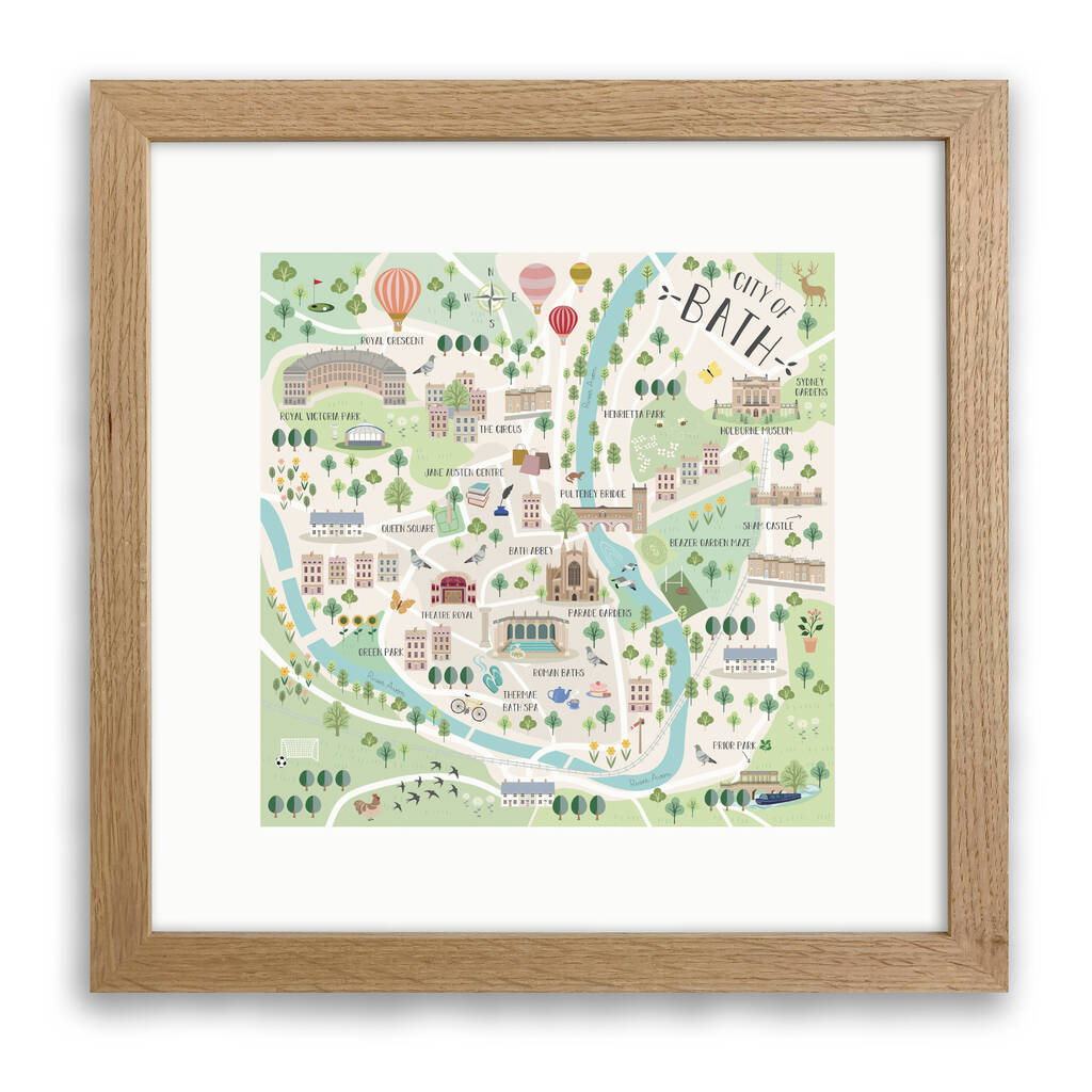 A high quality art print by Hilary Yafai titled 'Map of Bath'.