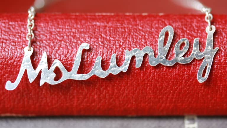 My work is influenced by the world around me; the birds and flowers in my garden, geometry (currently mad about triangles!) and I keep a little sketch book handy for sketches of possible new pieces of jewellery. My daughter likes to make the odd suggestion too! My popular name necklaces come from years of handlettering when I was still graphic designing, each one completely unique.