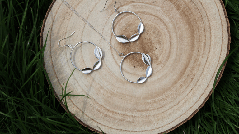 My love of nature and especially leaves stems from being a child; a fond memory is walking home from school listening to the rustling of the leaves under my feet in Autumn. Although my jewellery usually features a leaf design, I also enjoy incorporating other plants such as daisies, roses and water lilies into my designs.