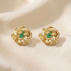 Dara Emerald Cz Sterling Silver Stud Earrings