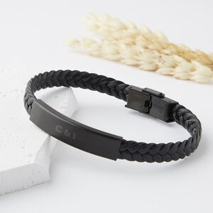 Men's Braided Leather Bracelet With Engraved Black Stainless Steel Clasp – Artisan Jewellery