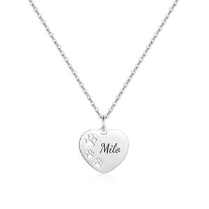 Personalised Engraved Name Necklace Dog Paw Print Design