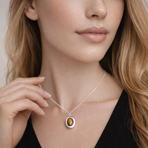 Personalised Sterling Silver Gold Tigers Eye Gemstone Locket Necklace With Photos