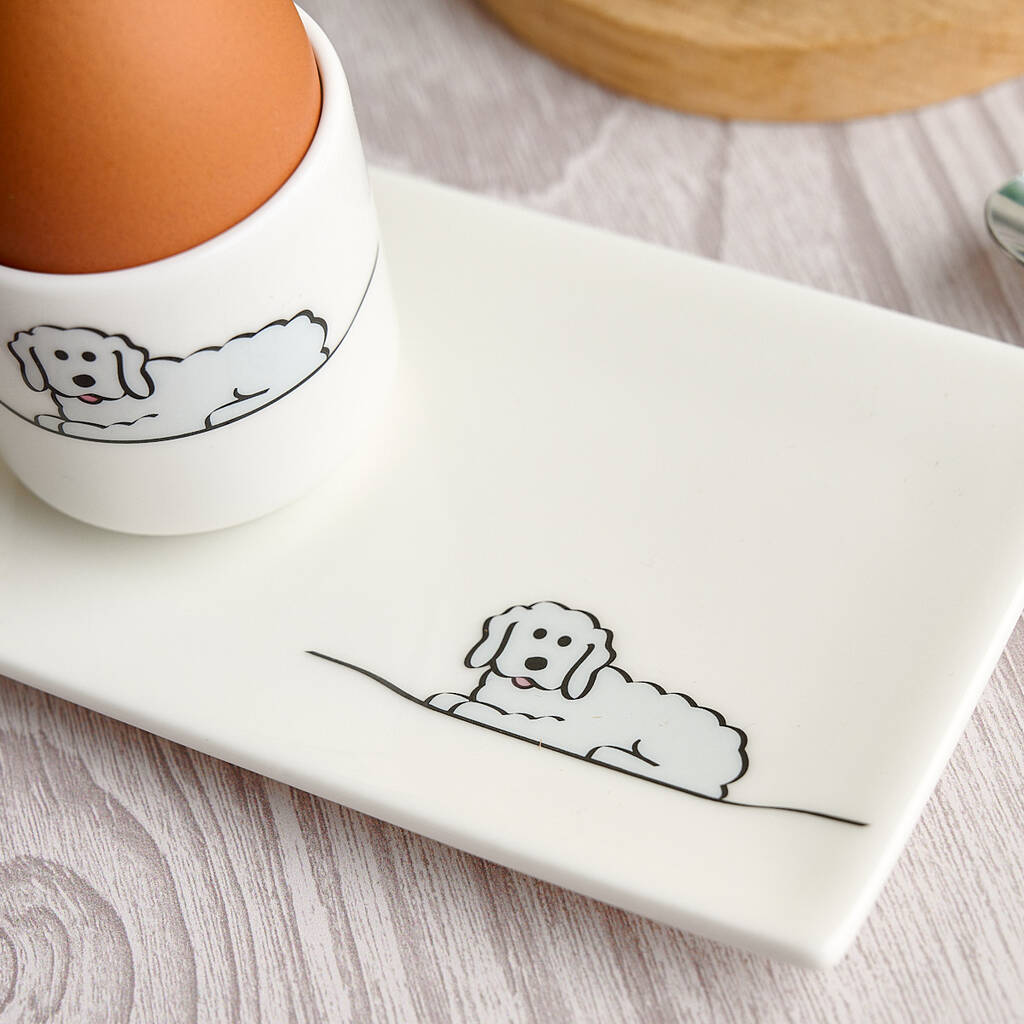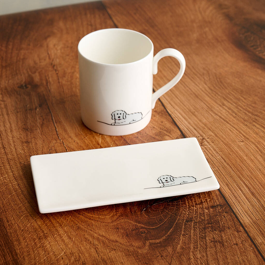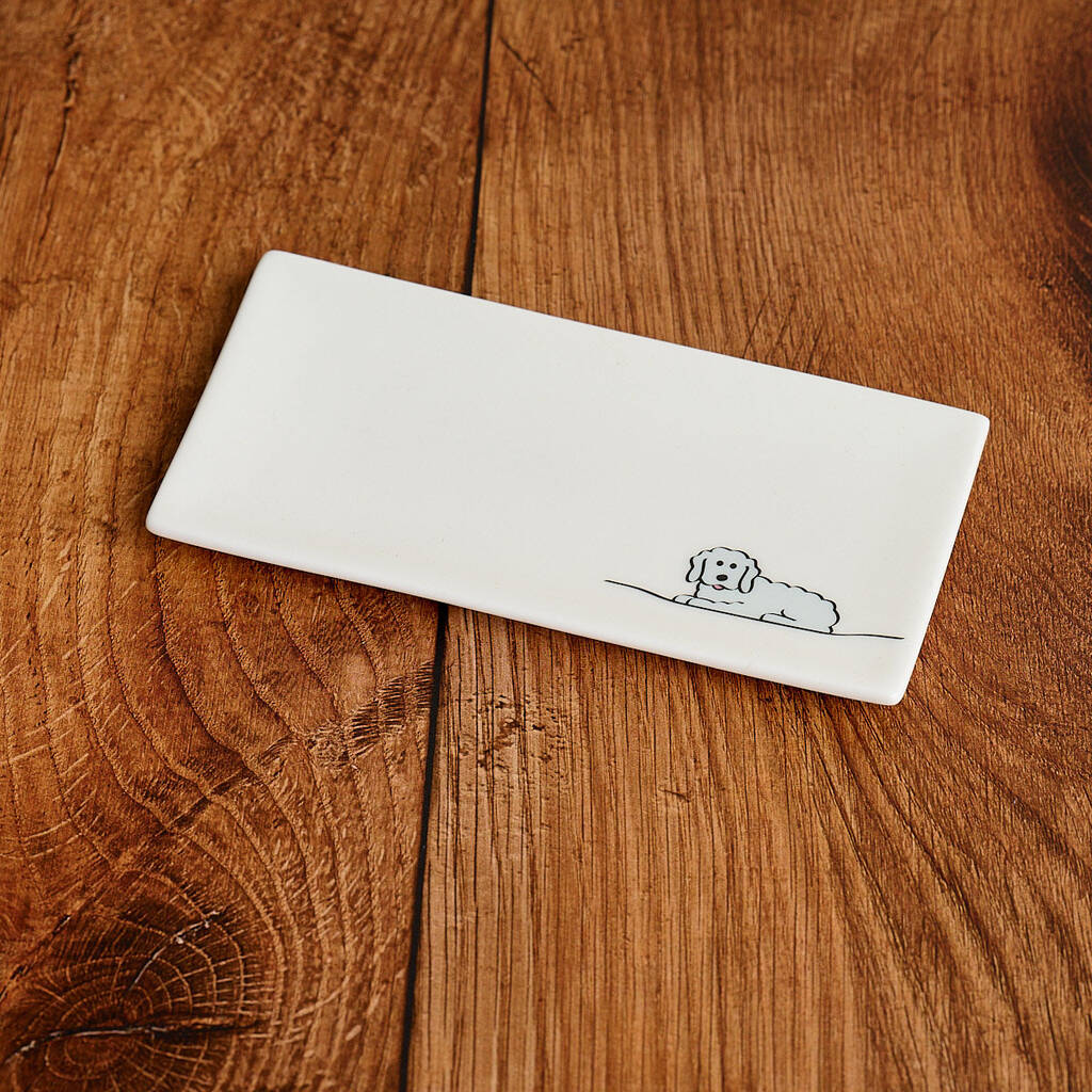 This delightful fine bone china mini tray features Fluffy Dog by Jin Designs, hand-decorated and perfect gift for dog lovers.
