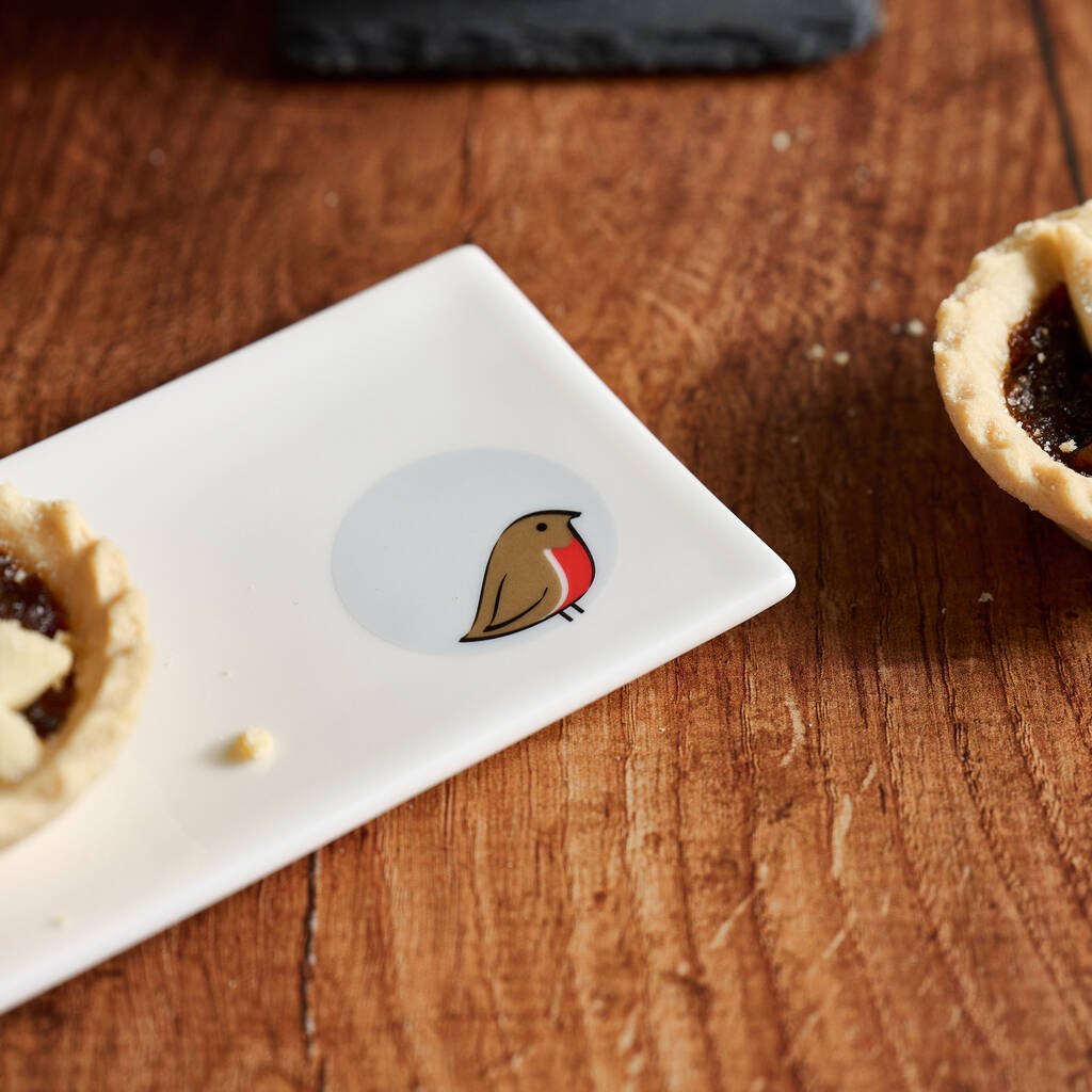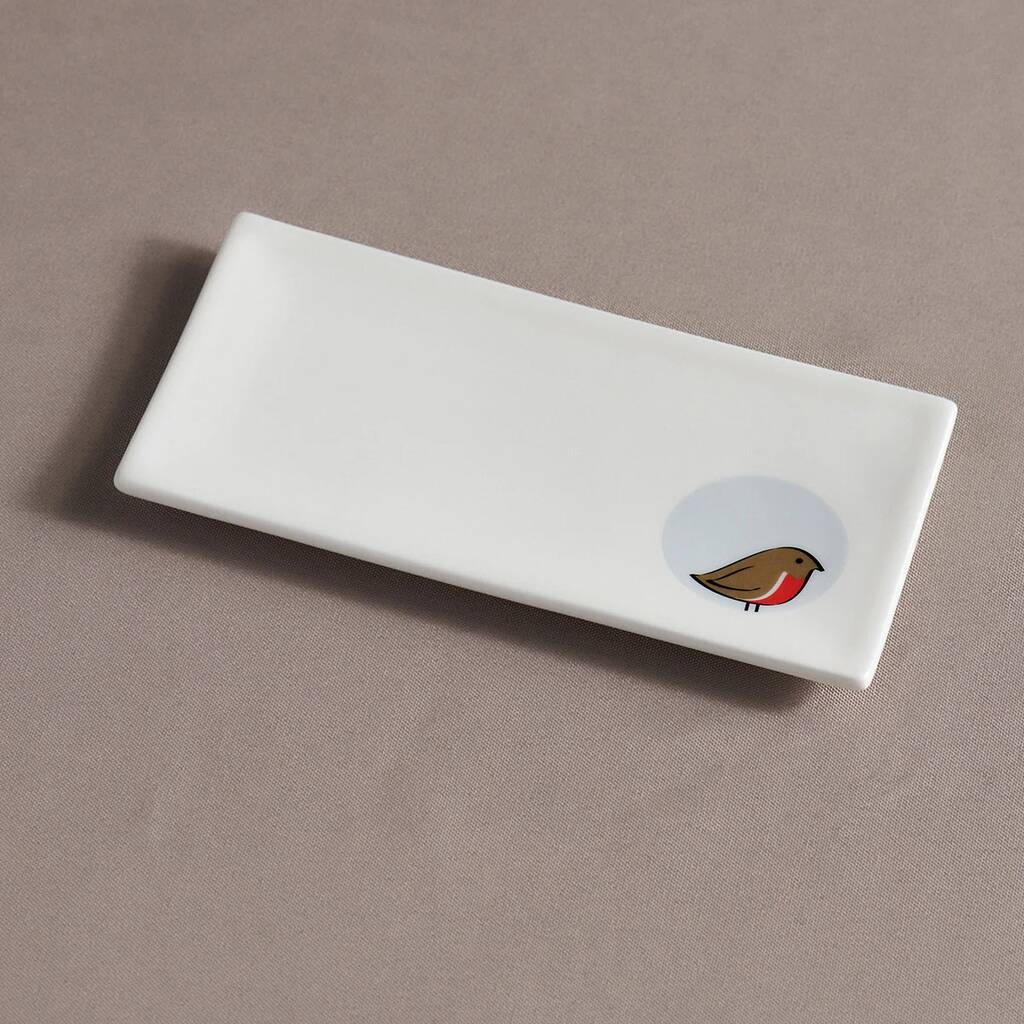 This delightful fine bone china mini tray features the new style Robin in the Window. This is a delecate dish, ideal for those tasty nibbles.