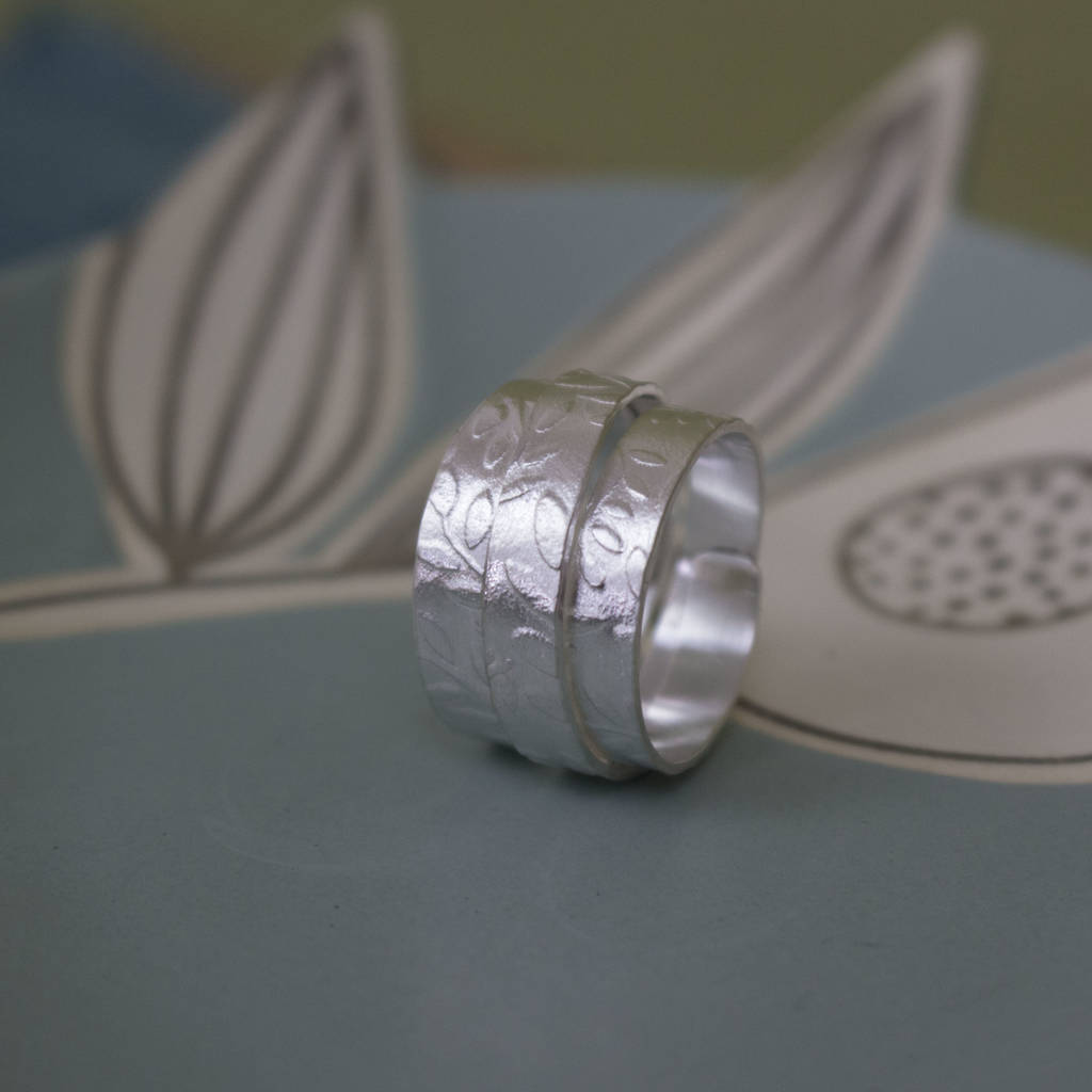 Sterling Silver Leaf Ribbon Ring