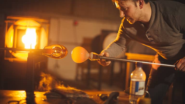 I started blowing glass when I first became an apprentice at the age of 16. Following the completion of my degree in Glass Design at Edinburgh College of Art, I was awarded the prestigious Broadfield House scholarship studio. In 2013, I launched my own independent glass blowing studio based in Clavering, Essex.
