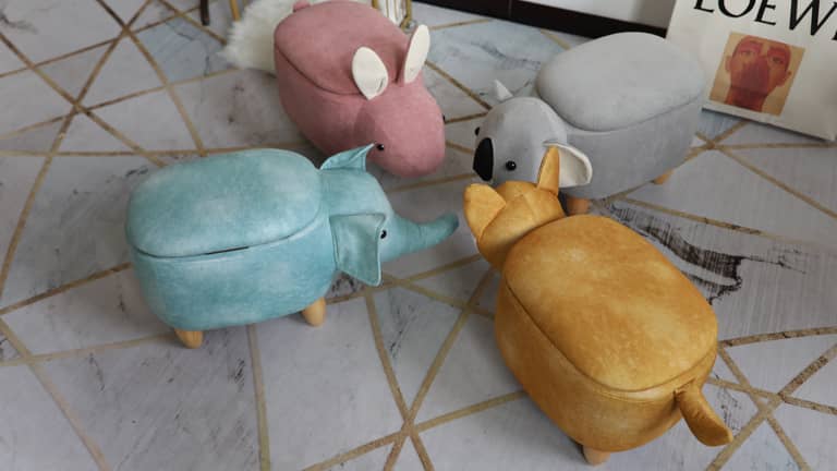 We have now produced 4 animal footstools, all cute, adorable and each capture the child in us. A Gold Fox, Turquoise Elephant, Grey Koala Bear and a Pink Rabbit, all made exclusively, with soft to touch hard wearing upholstery fabric.
