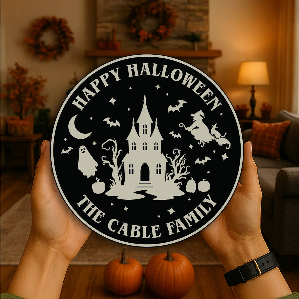 A spooky twist on our bestselling plaque - this personalised Halloween sign adds frightful charm to your door, wall or window for trick-or-treat season.