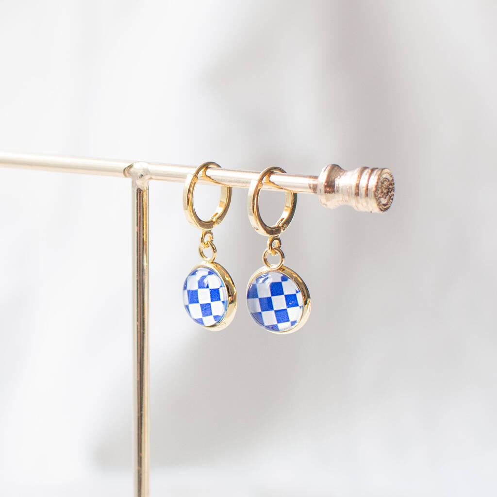 • Royal Blue Checkered Earrings, thumbnail 1 of 6