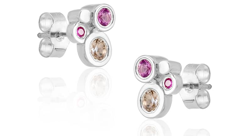 Indulge yourself in the new Cluster collection. Solid sterling silver pieces demonstrate various cluster combinations that display stunning brilliant cut precious stones that add vivid colours and sparkle to the contemporary pieces.
