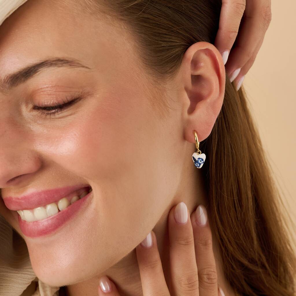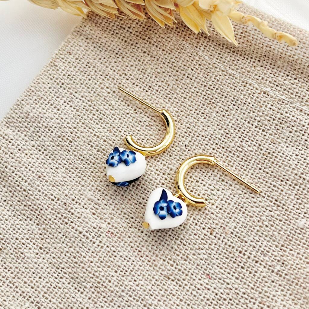 Blue Floral Heart Clay Handmade Earrings