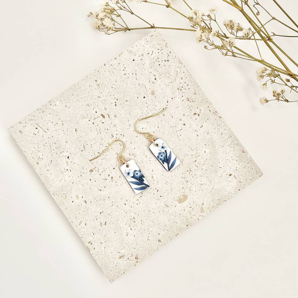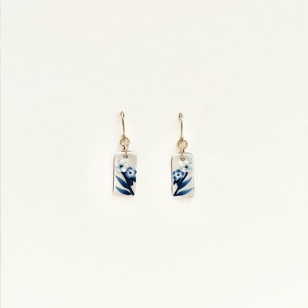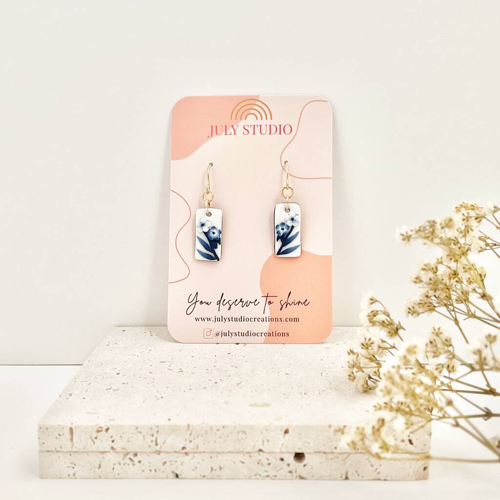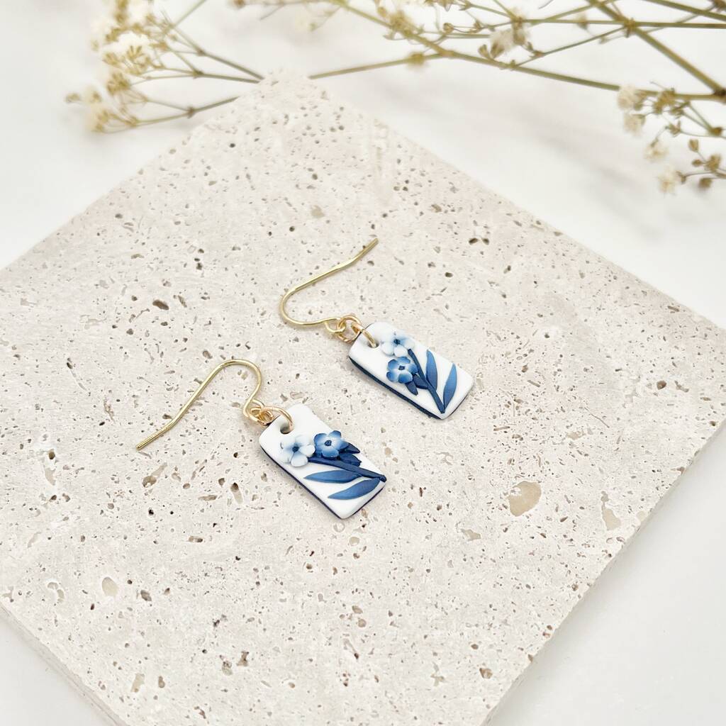 Delicate Blue Floral Handmade Clay Dangle Earrings