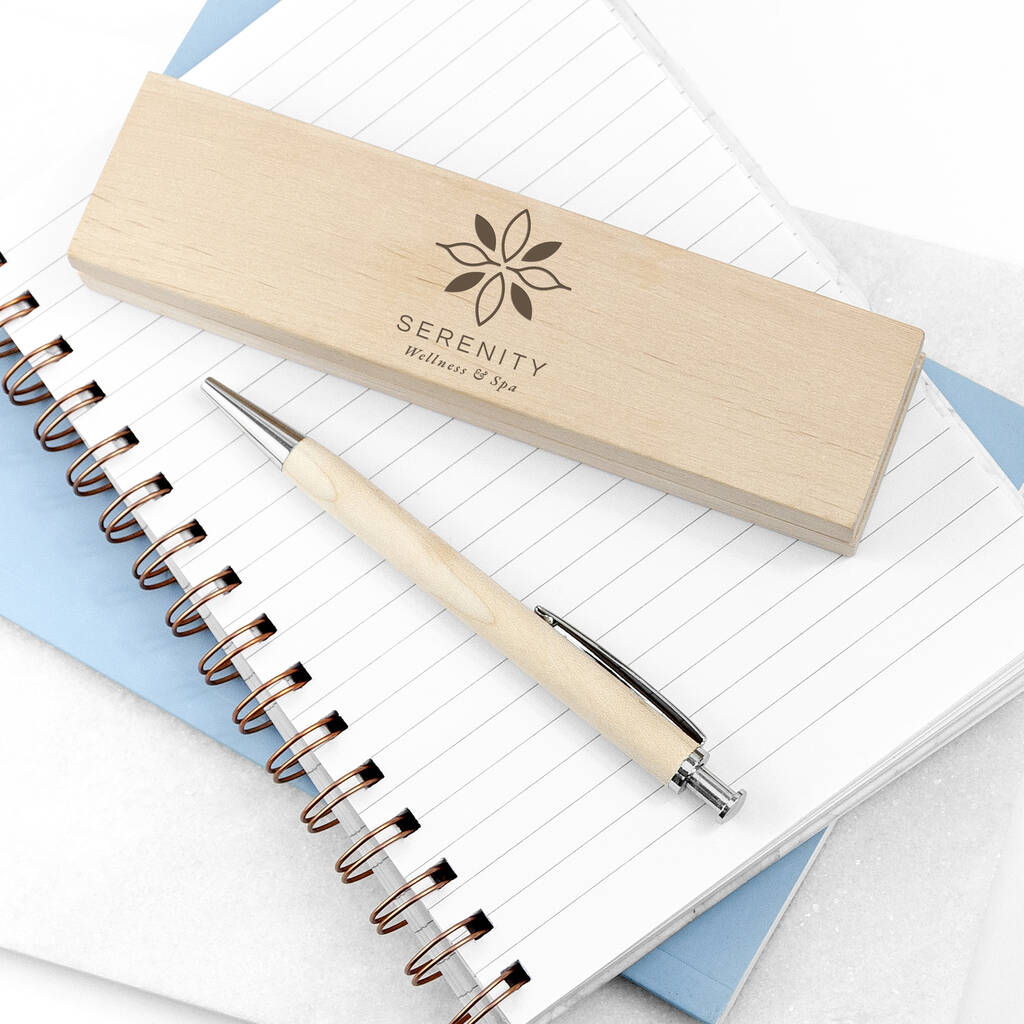 Custom Logo Beech Wood Twin Ballpoint Pen Set