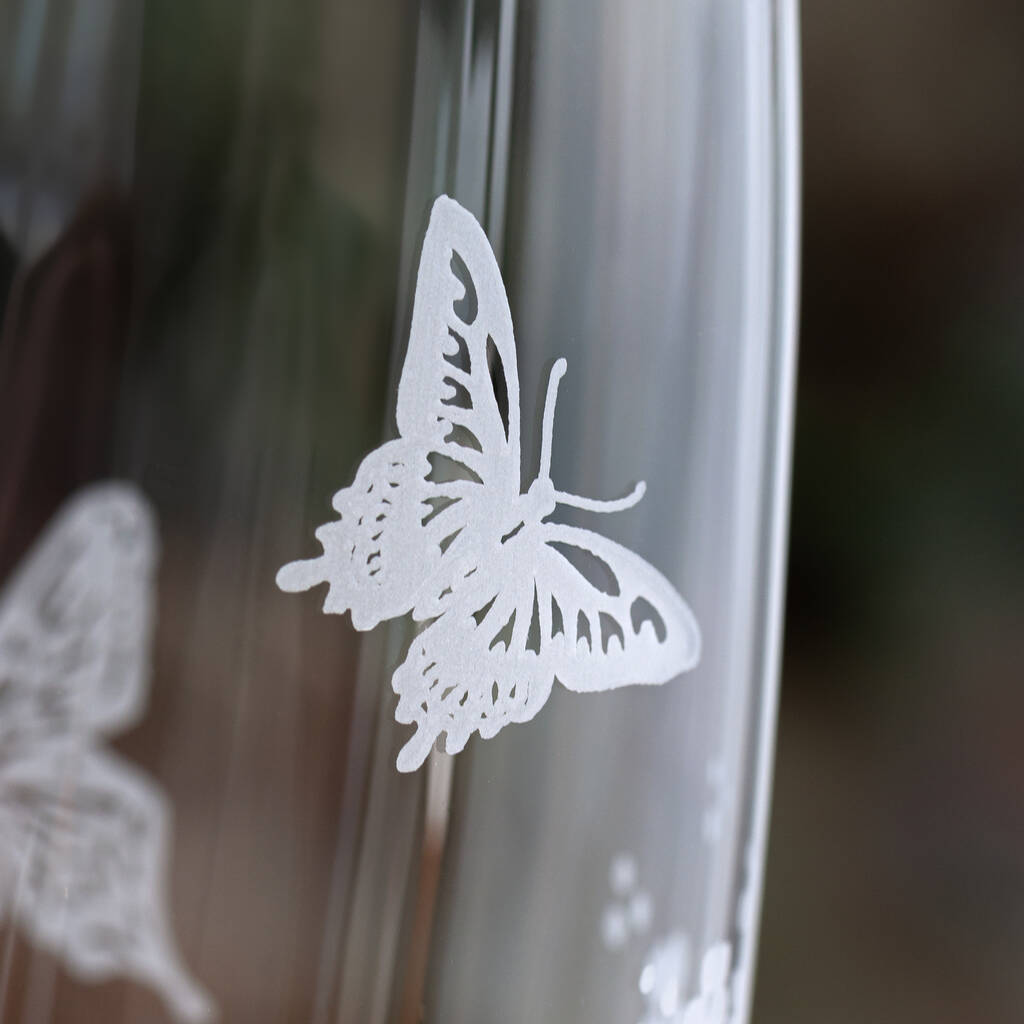 This beautiful homeware piece features a hand etched floral and graceful butterfly design that symbolises transformation, beauty and nature’s delicate wonder.