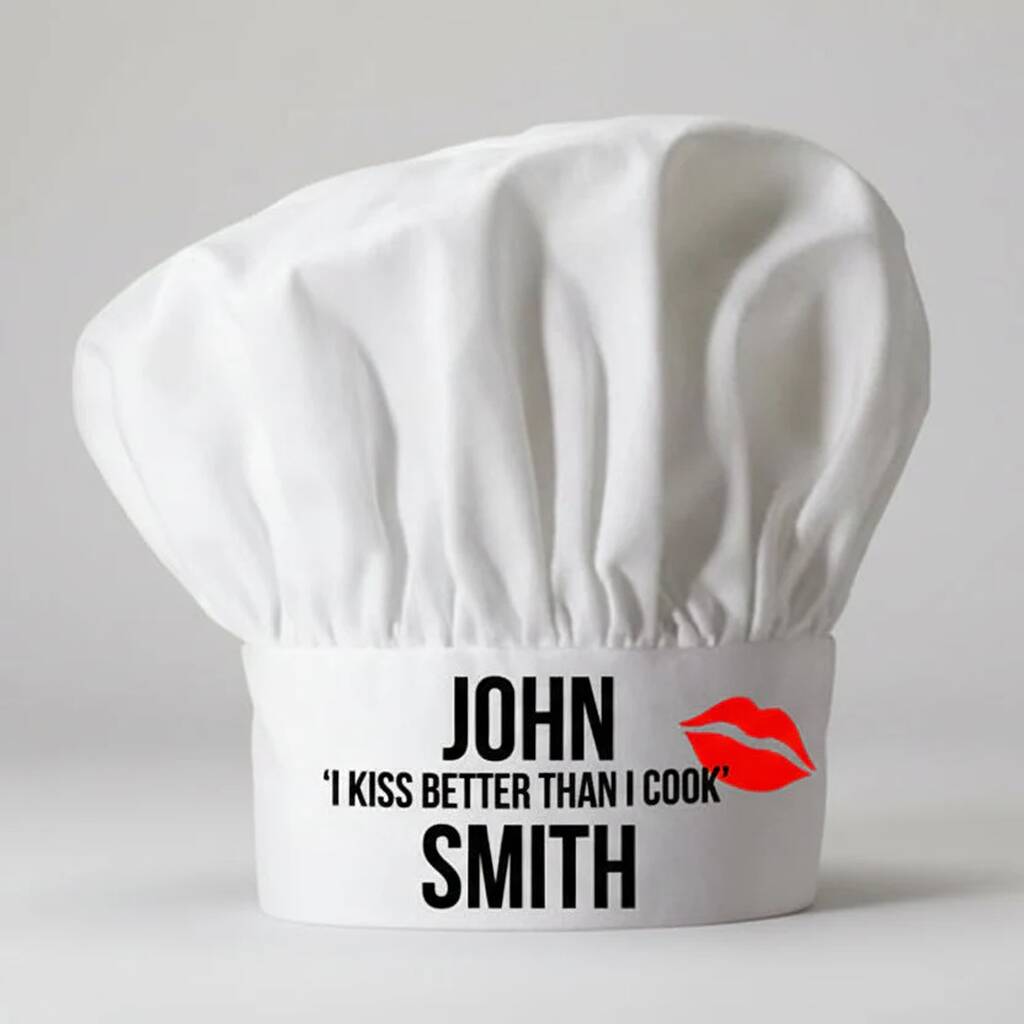 This personalised chef hat isn’t just novelty headwear; it’s a light-hearted declaration of love for anyone who knows their strengths lie more in smooching than sautéing. Whether your partner is a self-confessed disaster in the kitchen or simply enjoys a bit of banter while baking, this quirky accessory turns every cooking session into a moment to remember.