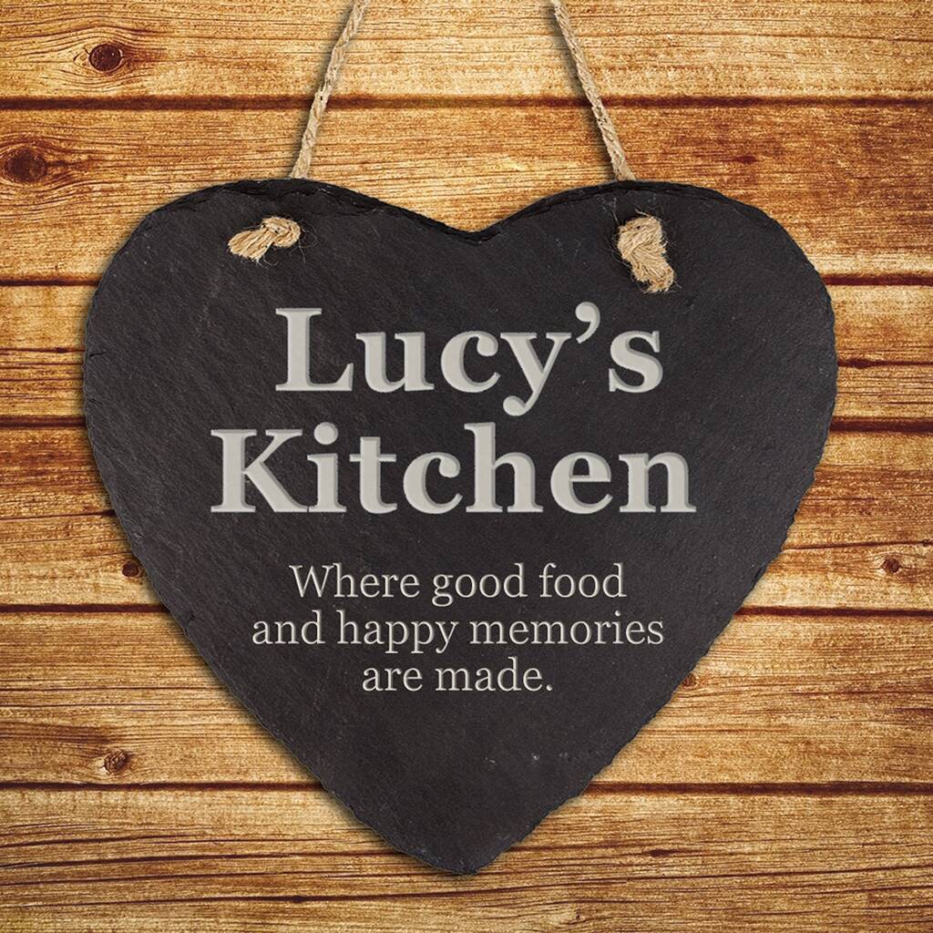 The contrast between the pale engraving and the rich charcoal slate creates a striking yet homely look that suits everything from cosy cottages to modern family kitchens. The name and room of the house are always written in larger text, making them the focal point of the design, while your chosen message sits neatly below in slightly smaller lettering, adding warmth and personality.