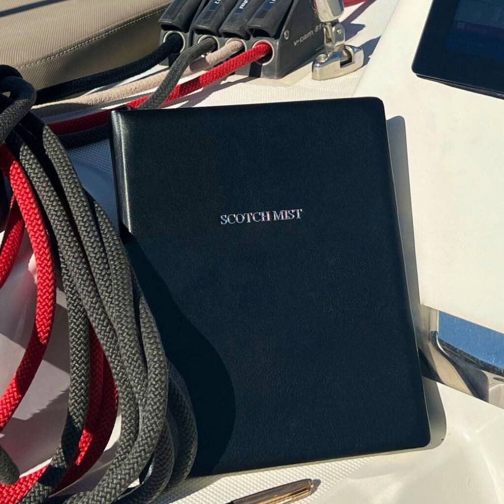 An exquisite Personalised Luxury Hand Bound Leather Log Book - a refined and practical companion for any discerning boat owner or sailing enthusiast.