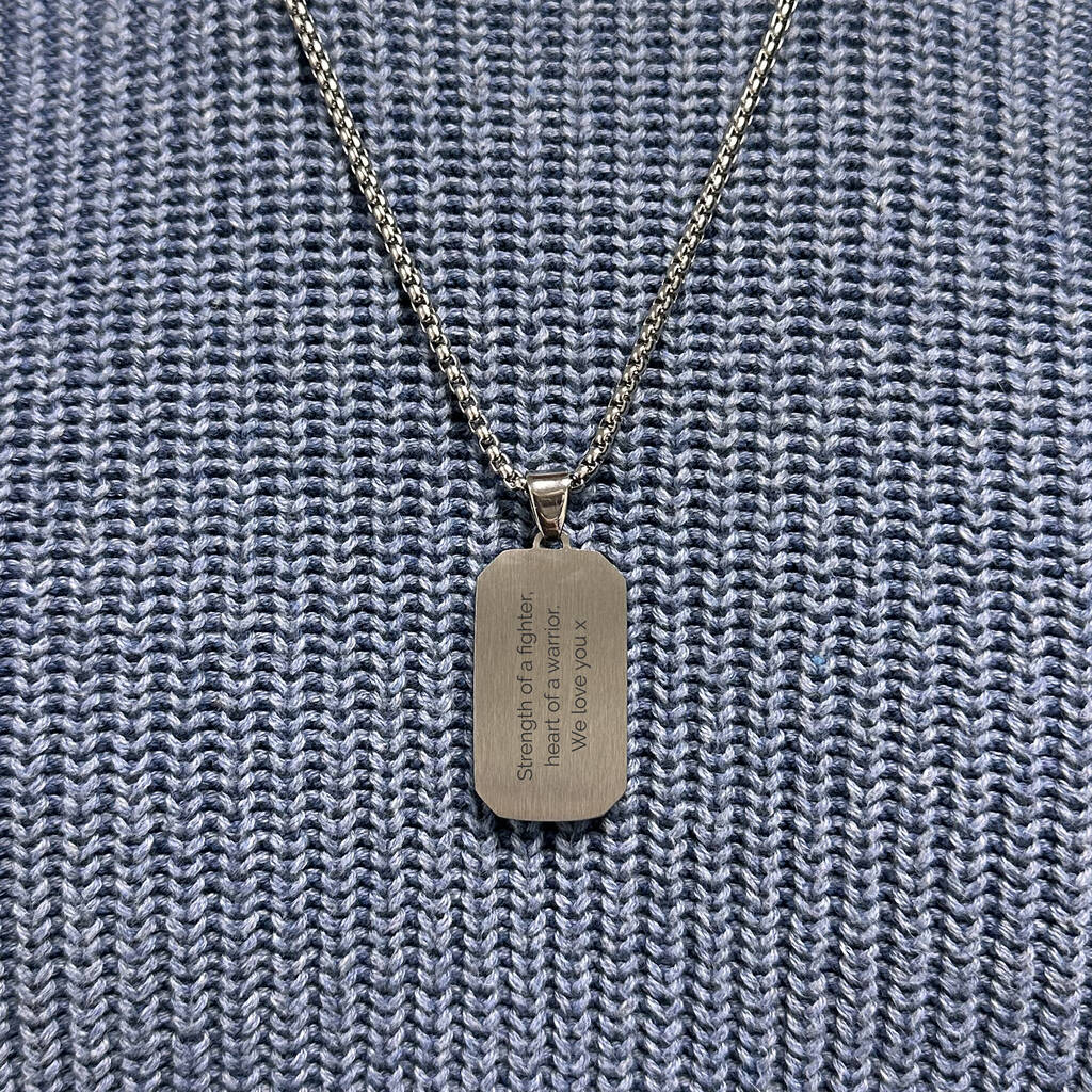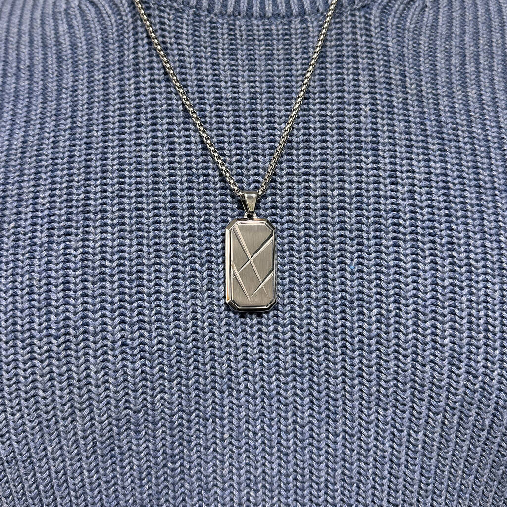 A gorgeous Personalised Men’s Contemporary Crosshatched Silver Dog Tag Necklace - the perfect birthday, Christmas, Valentine's or Father's Day gift for him.