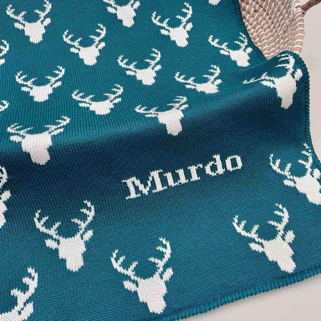 Personalised Knitted Stag Baby Blanket