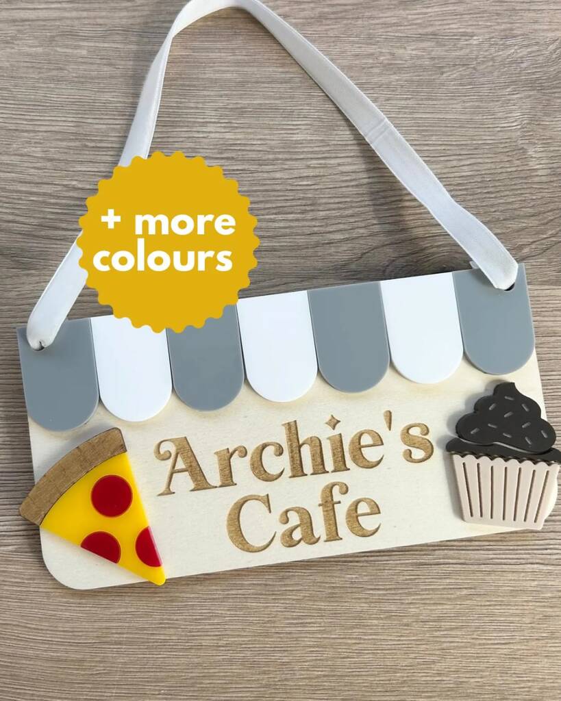 Personalised Wooden Play Kitchen Market Shop Cake Sign Montessori Pretend Play Accessory