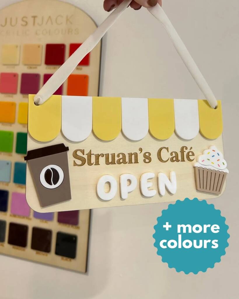 Personalised Wooden Play Kitchen Market Shop Sign Montessori Pretend Play Accessory