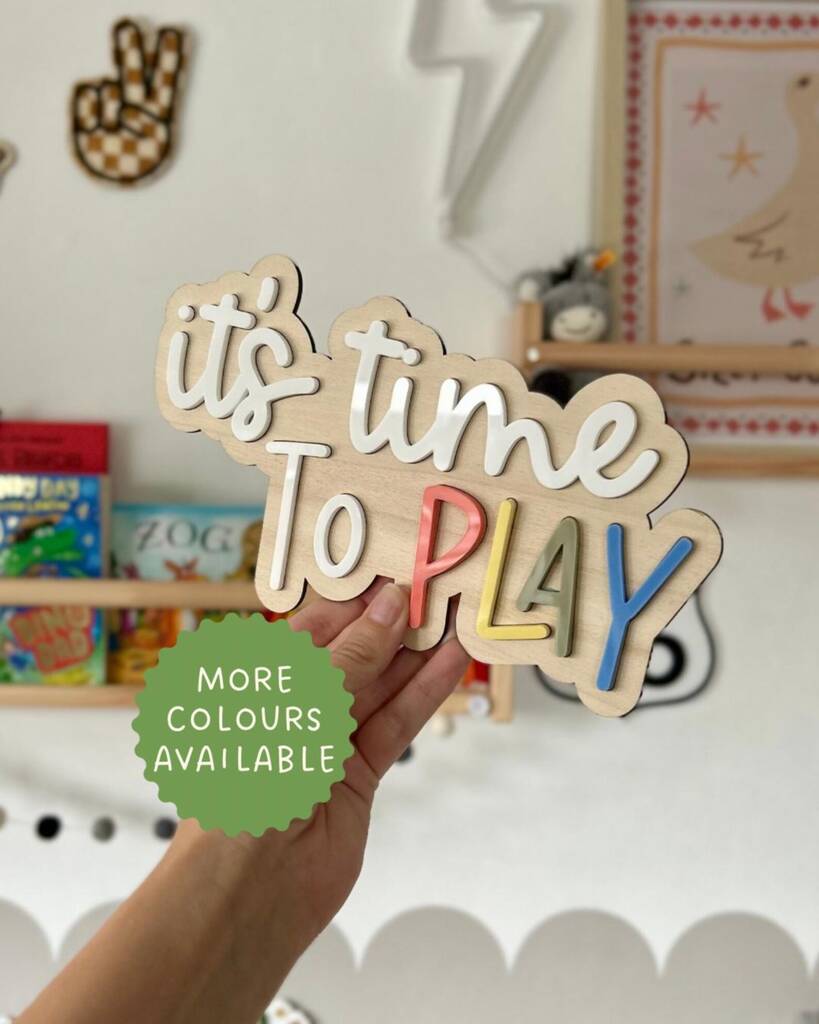 Wooden Play Sign Children’s Bedroom Playroom Decor Montessori Pretend Play Accessory