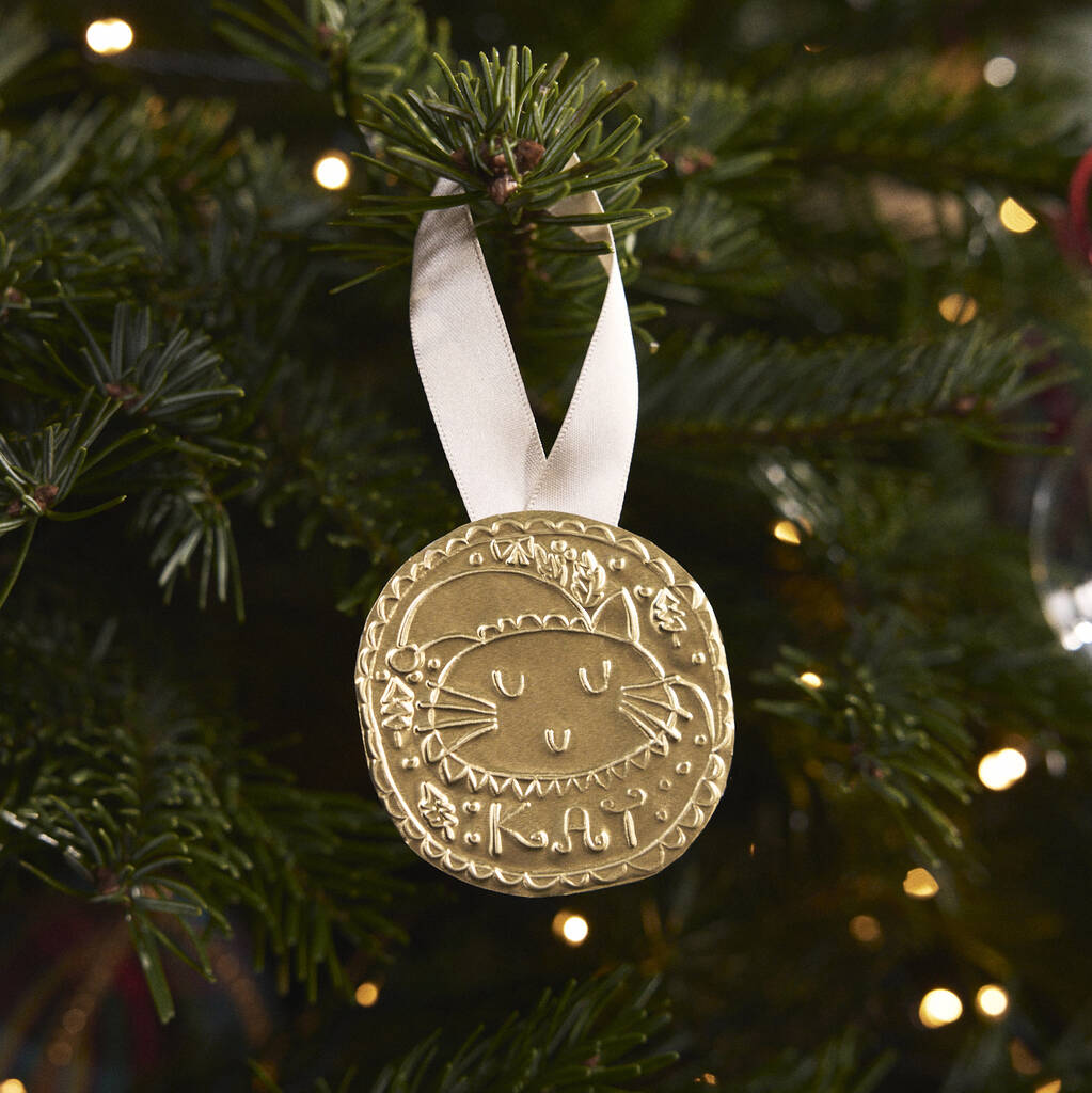 Personalised Gold Foil Cat Christmas Decoration