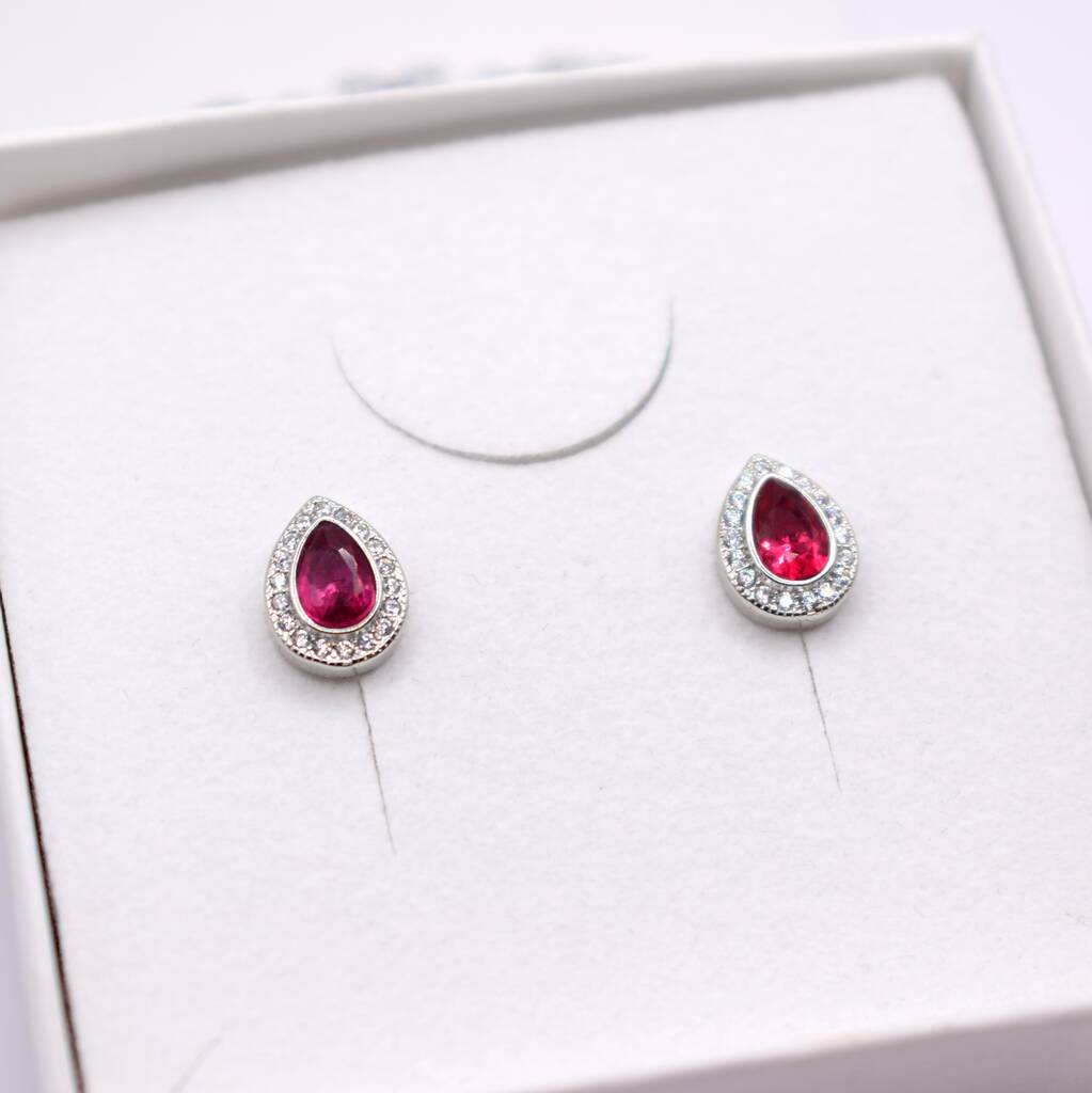 Teardrop Red Cz 925 Sterling Silver Pave Stud Earrings
