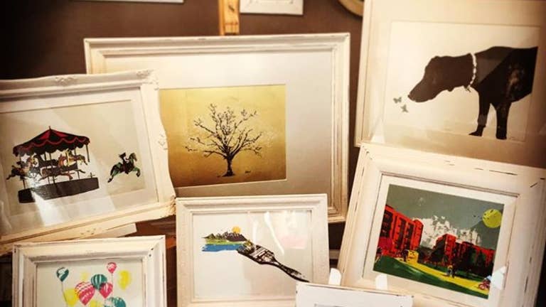 Katie designs and creates her conceptual illustrations from her studio located at the foot of Lake Windermere in the Lake District, using traditional photographic and silkscreen printing techniques.