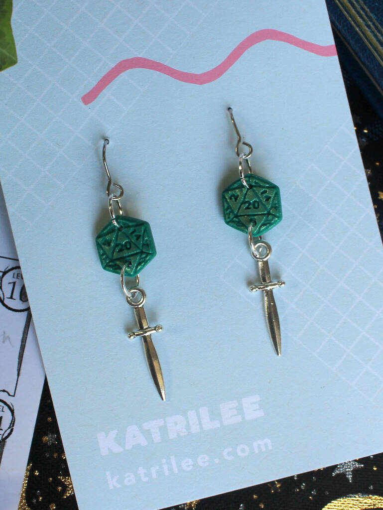 D20 Dice And Sword Surgical Steel Earrings