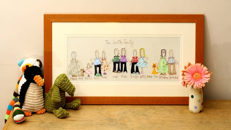Katy has been working from her studio at home for the past 20 years, producing beautifully quirky bespoke handmade machine embroidered gifts including handmade cards, pictures, keepsake boxes, family trees, blankets, cushions, door names and height charts. All can be personalised to help you mark that special occasion such as a birthday, wedding, christening, new arrival and of course Christmas.