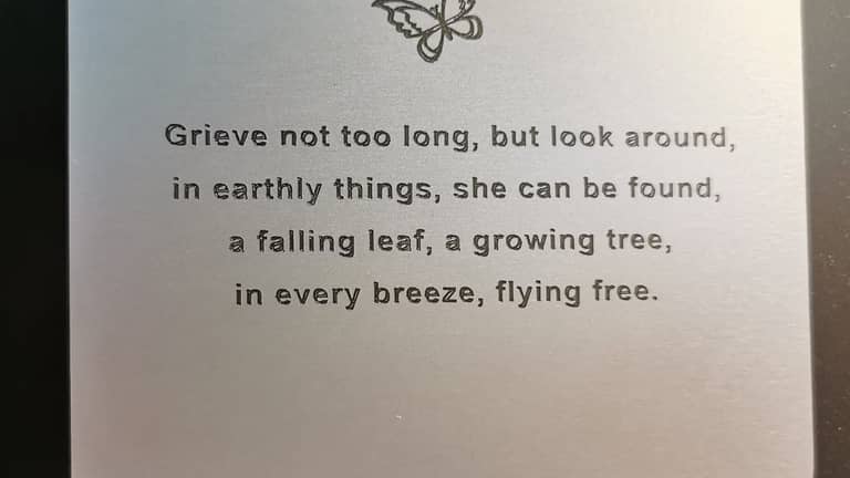 A tree plaque or garden marker engraved with a selection of popular verses and images. Suitable for memorials, celebrations and anniversaries.
