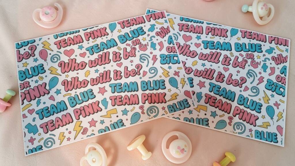 Gender Reveal Wrapping Paper – Set Of Two A3 Sheets – Baby Shower Gift Wrap | Team Pink Or Blue