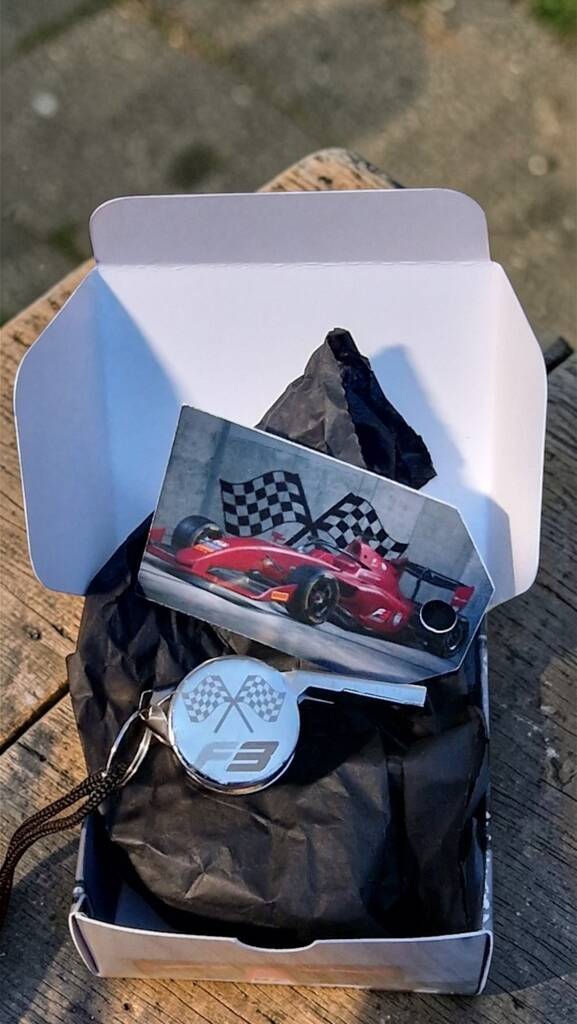 Personalised F3 Racing Whistle Gift – Engraved Metal Referee Whistle In Themed Box